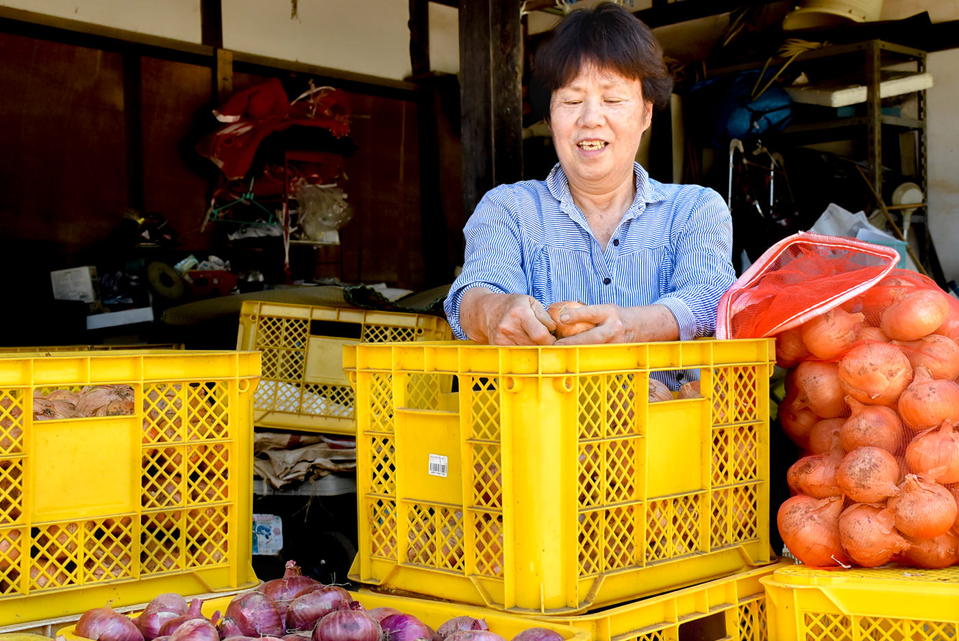 玉川地区にある20アールの圃場でタマネギやインゲンなどの露地野菜を栽培するほか、18アールの水田で米を生産しています。