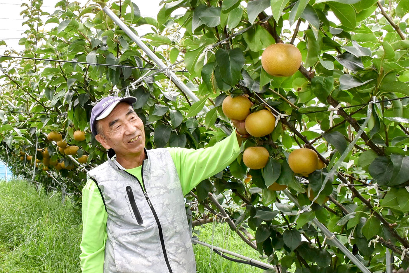 主として生産しているのは、「あつぎの梨」の名称で、かながわブランドに登録される梨。「幸水」や「豊水」、「あきづき」など、多くの品種を栽培しています。収穫した梨は、自宅で販売を行うほか、JA農産物直売所「夢未市」や相川農産物直売所に出荷しています。