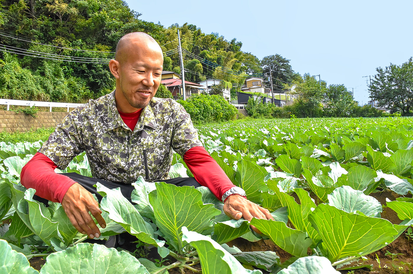 ハクサイの生育を確認する穗坂さん