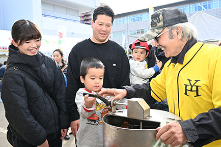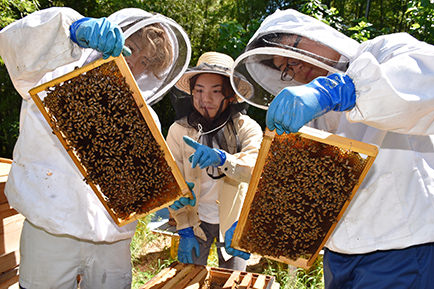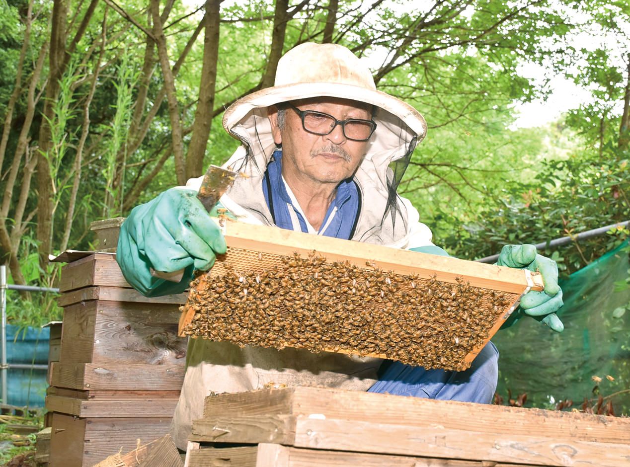 また、ミツバチは果実などの生産に必要な受粉作業を手助けしてくれることから、地域のイチゴ農家やメロン農家に巣箱を貸し出すなど、蜂蜜の生産だけでなく、地域農業を支える重要な役割を果たしています。この他、養蜂に対する理解促進に向け、厚木市農業まつり畜産祭・収穫祭では同市畜産会養蜂部会にて採蜜体験を行っています。