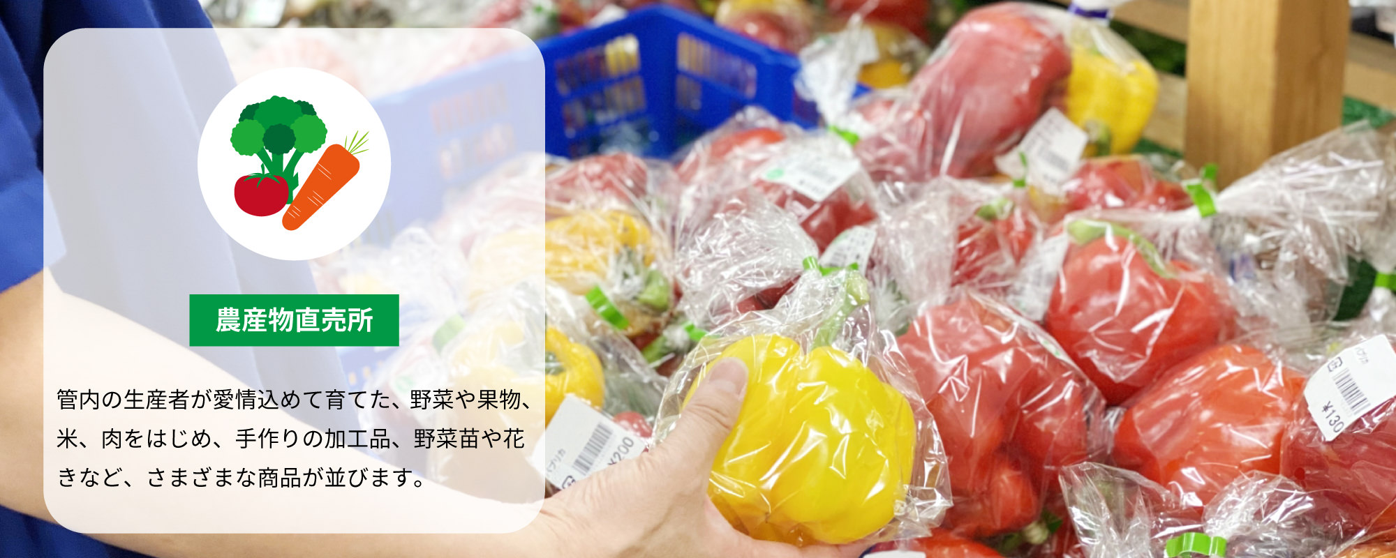厚木市・清川村で生産された、新鮮で安全・安心な地場農畜産物をはじめ、弁当やパン、菓子などの手作りの加工品、地元で生産される野菜苗や花き、植木などを販売しています。