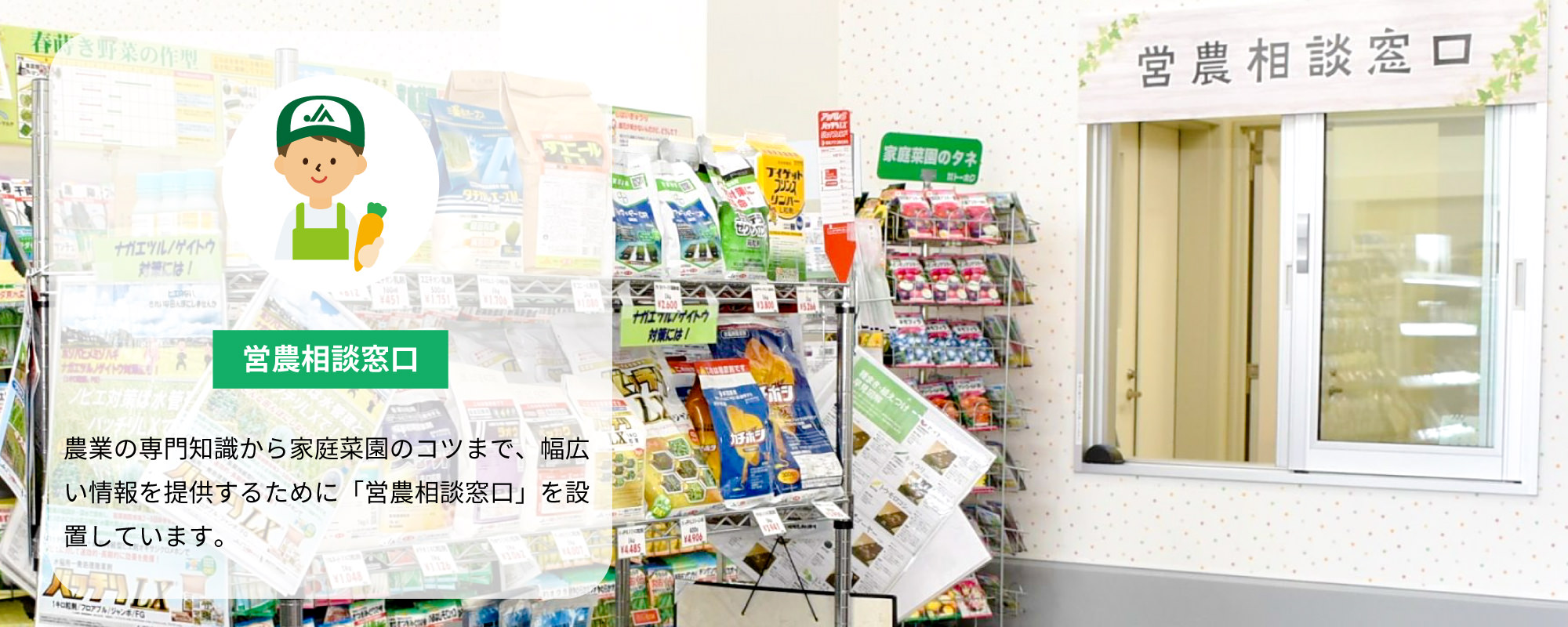 JAの営農技術顧問が常駐し、作物の育て方や病害虫対策、資材の使い方など、営農・家庭菜園に関するさまざまなご相談にお応えします。