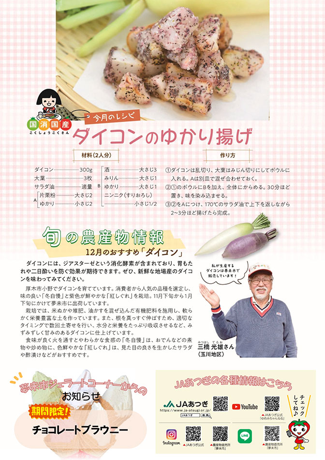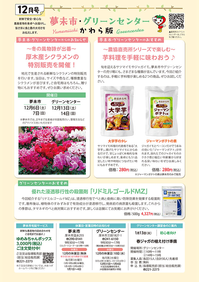 JAあつぎ農産物直売所の最新情報が満載の「夢未市・グリーンセンターかわら版」12月号をお届けします!