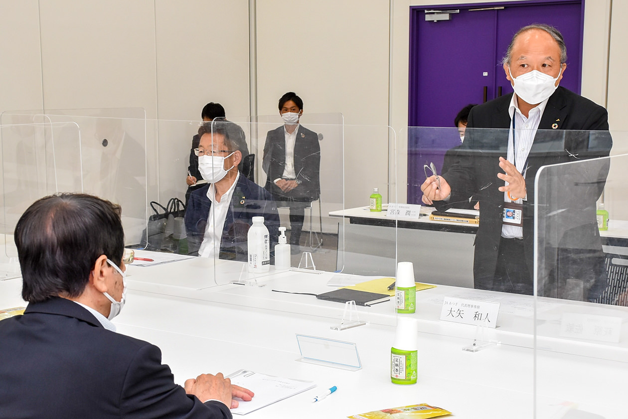 小林市長に管内農家の声を伝える大矢専務(右)