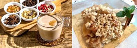 ホールスパイスを使ったおいしいチャイの入れ方を学び、スパイスを使ったアップルクランブルを作ります。