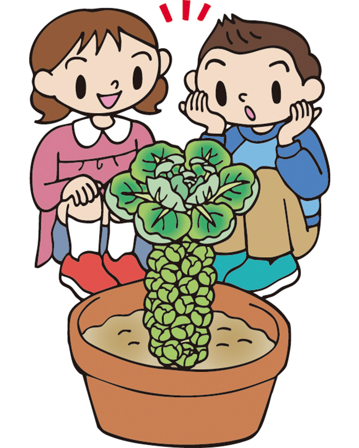 原産地はベルギーのブリュッセル地方といわれていて、英名は「ブリュッセルスプラウト」です。日本には明治初期にキャベツとともに導入され、秋から春の野菜として栽培されてきました。「子持ち甘藍(かんらん)」ともいい、子宝のイメージから昭和の結婚式の料理にはよく使われました。芽キャベツを鉢で栽培したものが正月の縁起物として飾られることもあります。