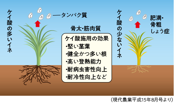 近年の水稲栽培における出穂期の猛暑などの異常気象は、高温障害や生育不良を引き起こし、品質の低下や収穫量の減少につながるなど、悪影響を及ぼしています。高温時には水や栄養が不可欠ですが、単に肥料を与えるのではなく、効率的に吸収するための「根作り」が重要です。今回は、丈夫な稲を作るために必要となるケイ酸の効果や有効な資材についてご紹介いたします。
