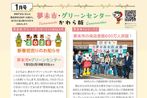 JAあつぎ農産物直売所「夢未市」は、消費者と生産者を結ぶ掛け橋です。地場農畜産物を供給する直売所の役割だけでなく、食と農に関するあらゆる情報を発信することで、地域とともに夢ある未来の実現を目指していきます。